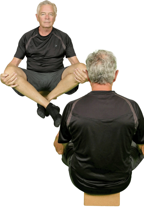 sit on the floor cross-legged as comfortably as youcan with a tall spine.